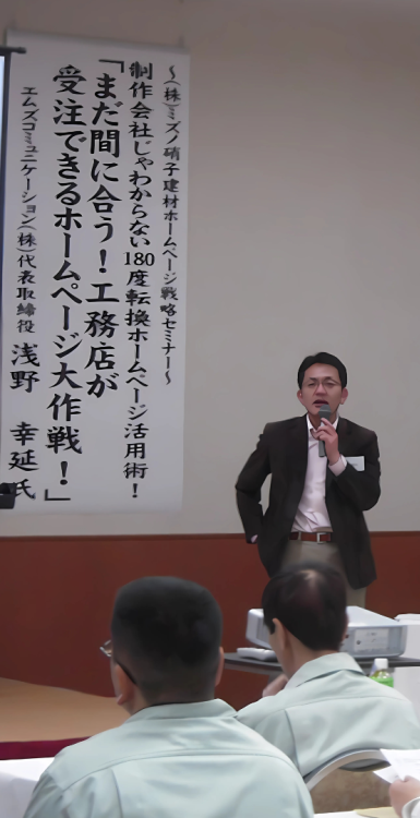 カスタムハウジング会員向けセミナー・日建学院 工務店総合イベント講演・再生工務店研究会セミナー・リクシル株式会社スタッフセミナー・㈱ミズノ硝子建材様 ホームページ戦略セミナー・株式会社篠原商店工務店集客セミナー・NCC21様マーケティングセミナー・性能表示セミナーほか多数。